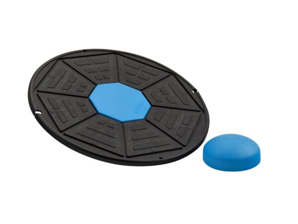A wobble board can stimulate balance and strength in a playful but efficient way to support physical awareness and balance. It can be uséd as a training device to target and isolate the strengthening of specific muscle groups, while other exercises train big muscle groups. The 2-in-1 balance board can offer 2 degrees of difficulty to target and skill level. You can remove the blue nodule in the middle of the board for an easier setting or leave it in for a higher degree of balance control and for a more intense workout.